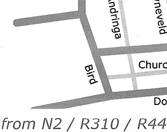 When coming from the N1, drive straight through town along Bird Street, until you reach the mini circle at the T-junction with Dorp Street. Turn left.
